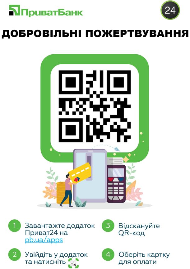 Призначення платежу: Добровільні пожертви (це вказувати обов'язково!)